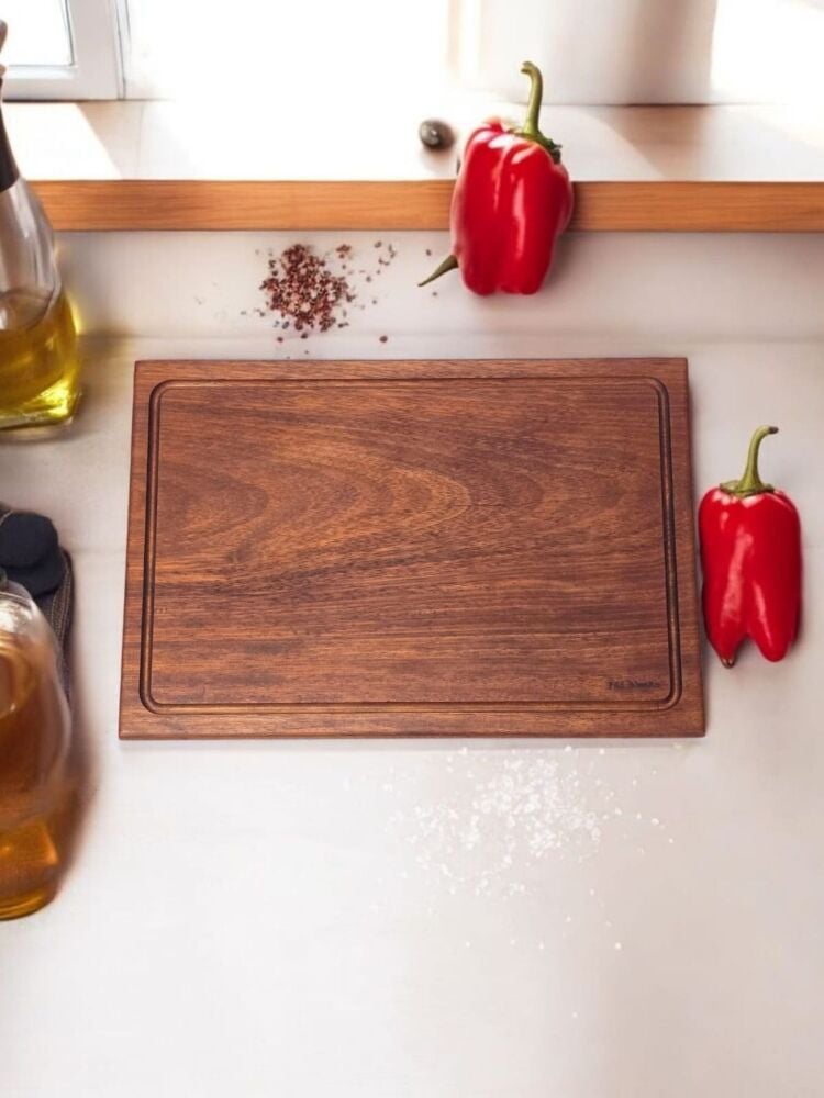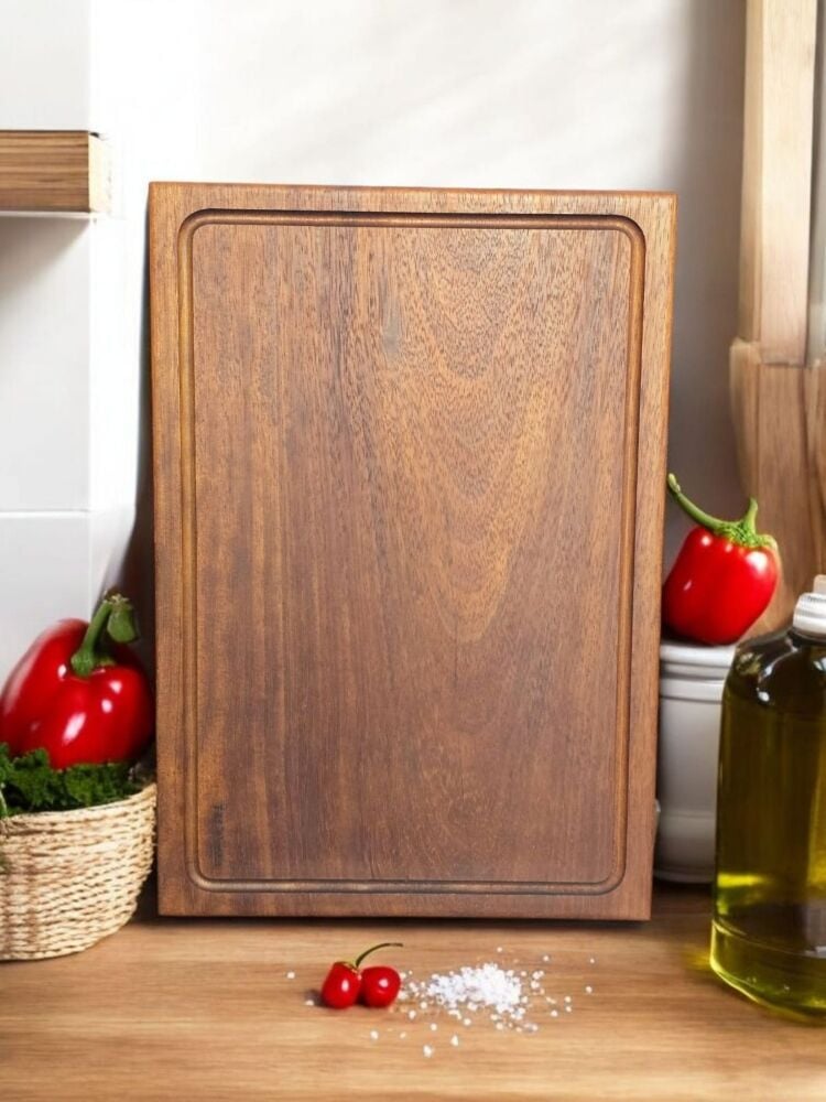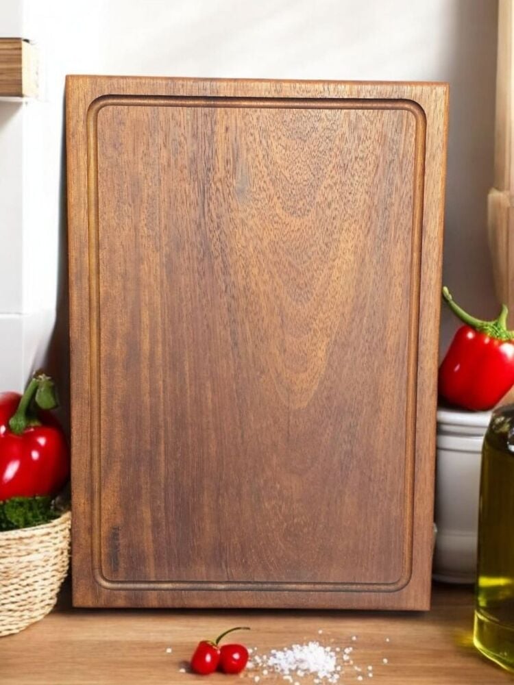 40 X 27,5 Cm Yekpare Masİf Eksİz Tek Parça İroko Doğal Ahşap Oluklu Kesme Sunum Et Ekmek Sebze Doğrama Tahtası