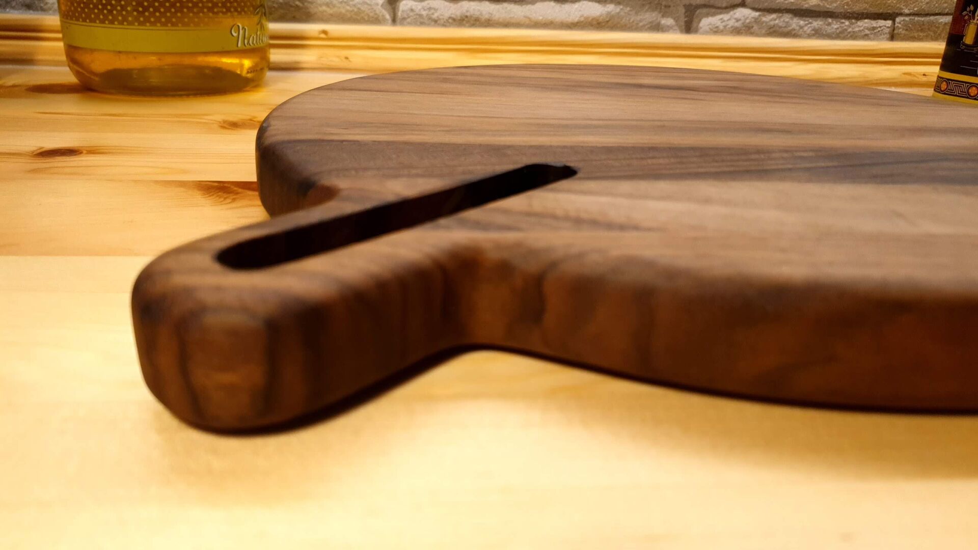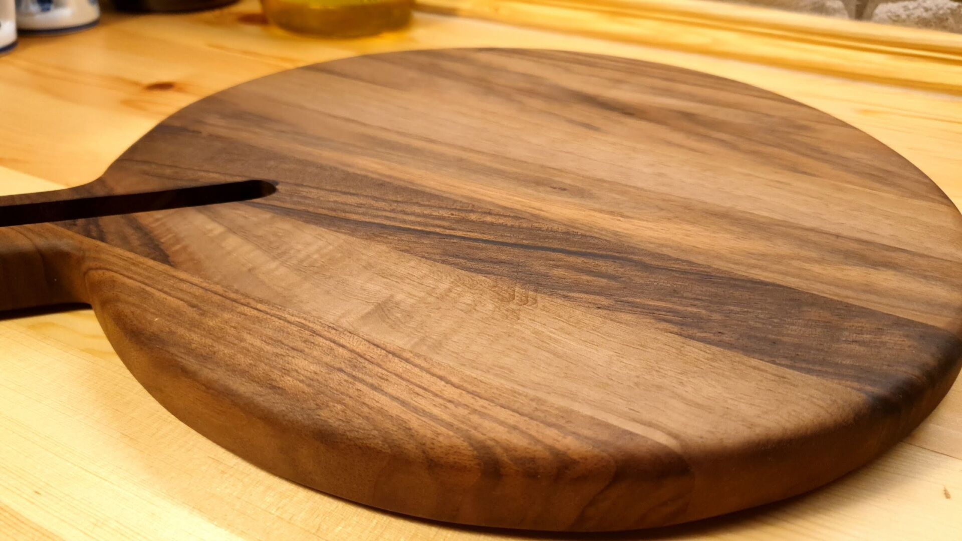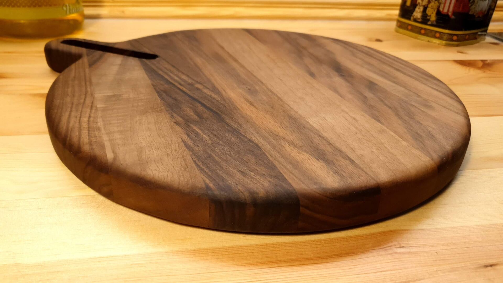 Ceviz Ağacı 35 Cm Çap Doğal Ahşap Pizza Peynir Sunum Et Steak Saplı Kesme Tahtası