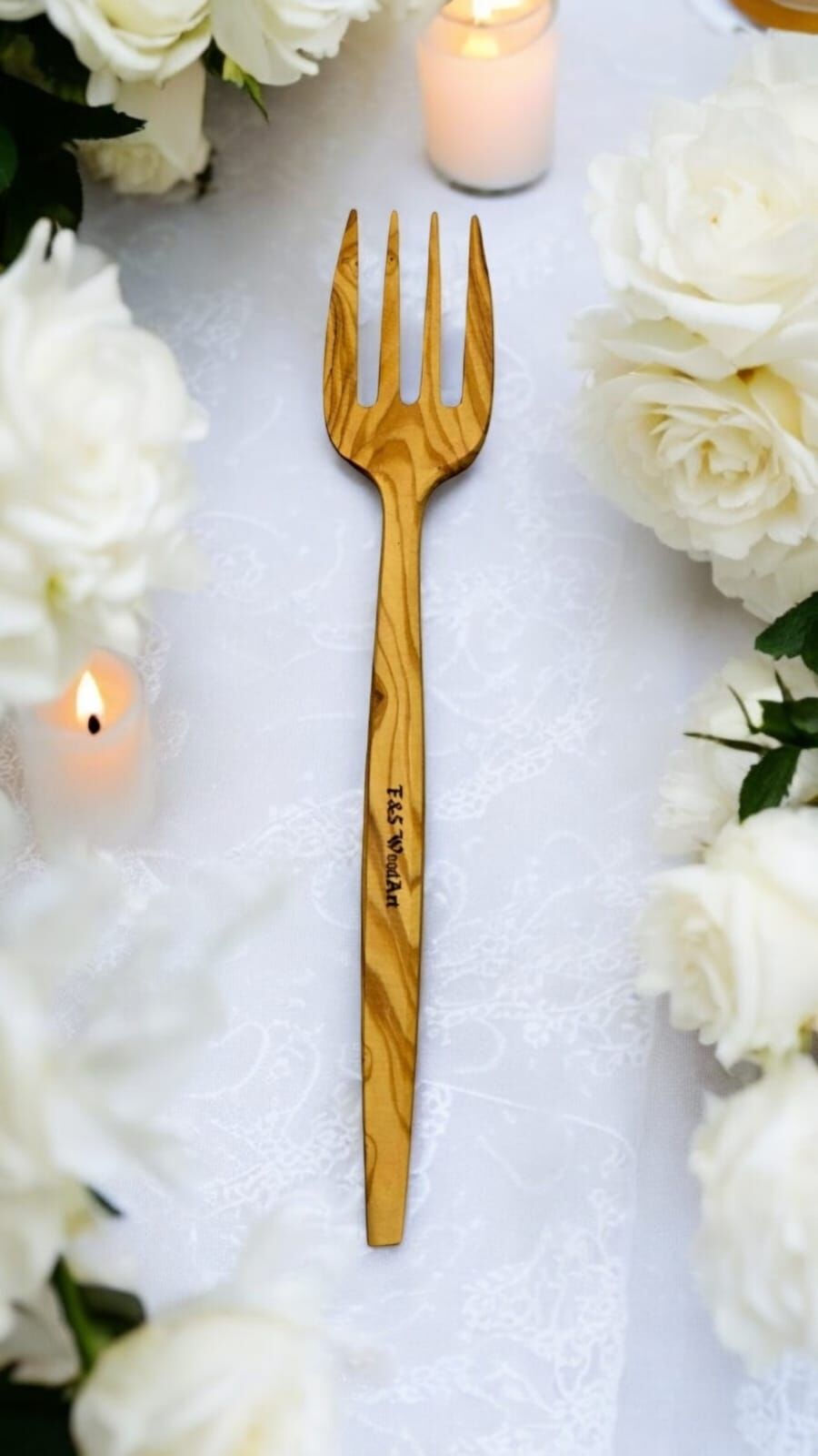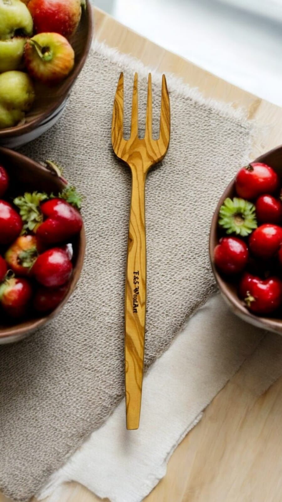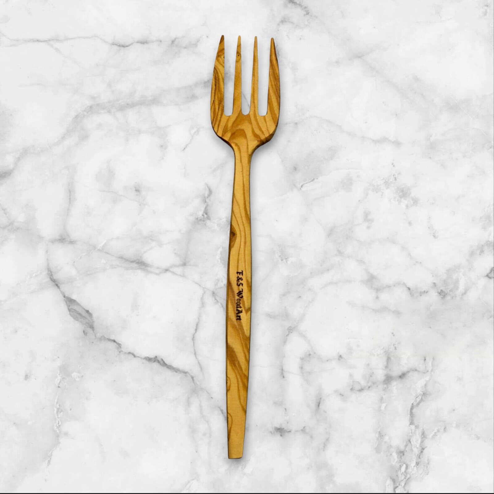 Edremit Zeytin Ağacı Doğal Ahşap El Yapımı Servis Çatalı 26,5 Cm