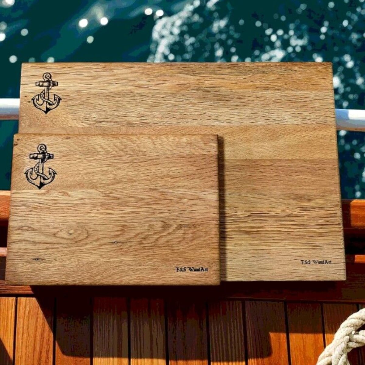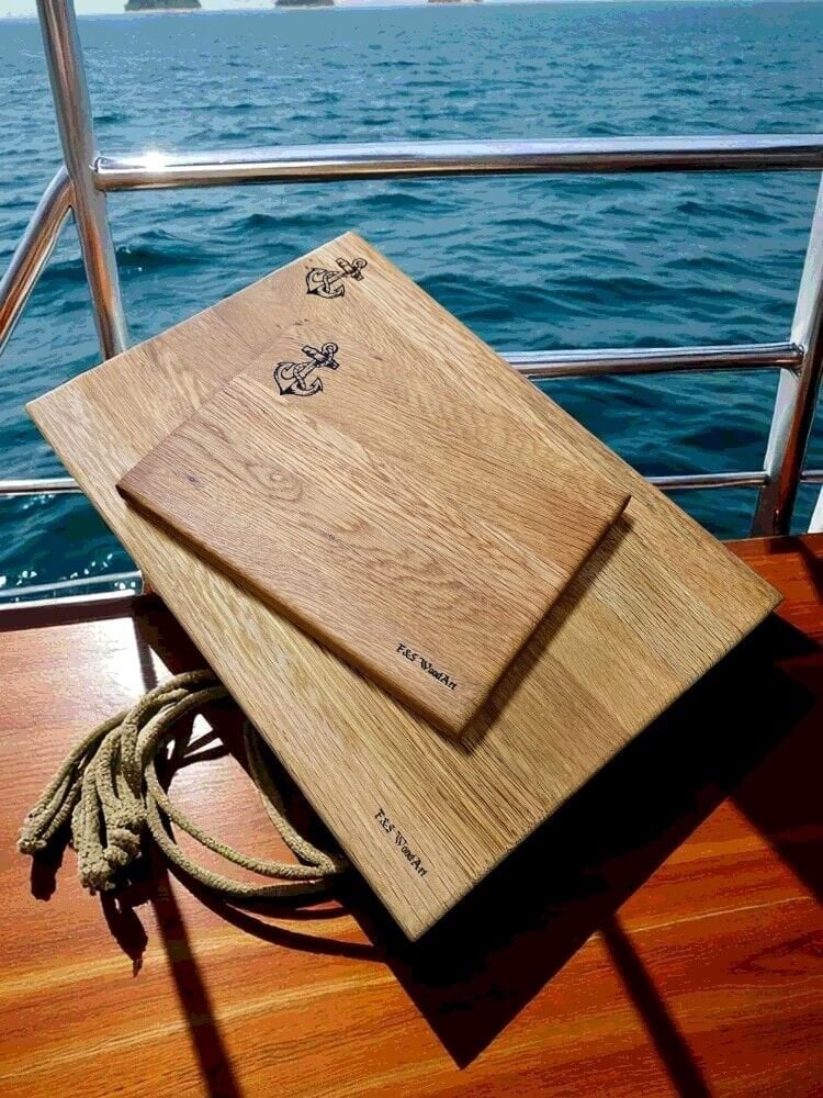 Marin 2 Li Set - Meşe Doğal Ahşap Mutfak Kesme Sunum Et Ekmek Doğrama Tahtası