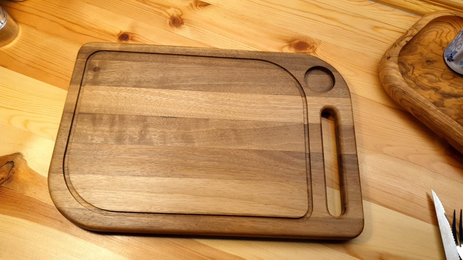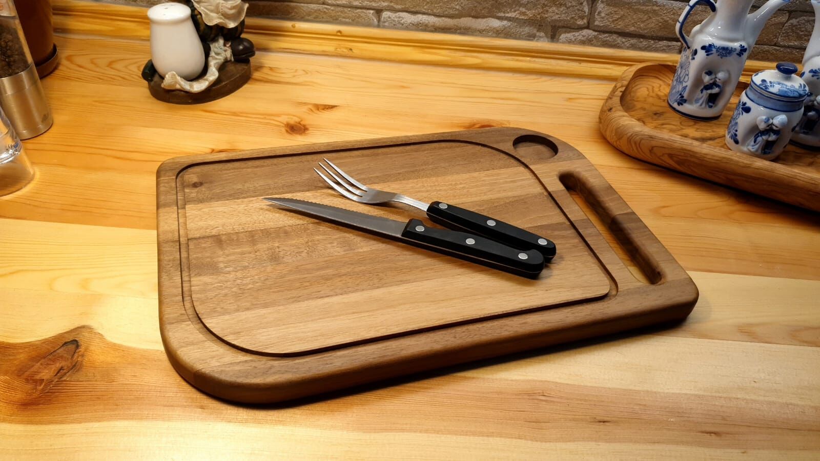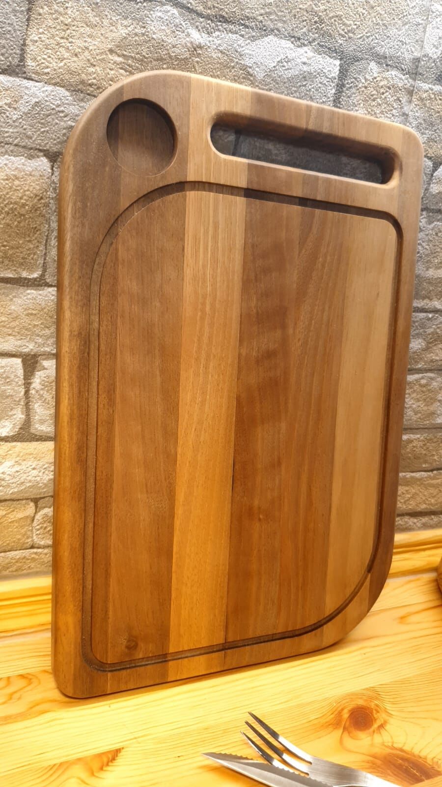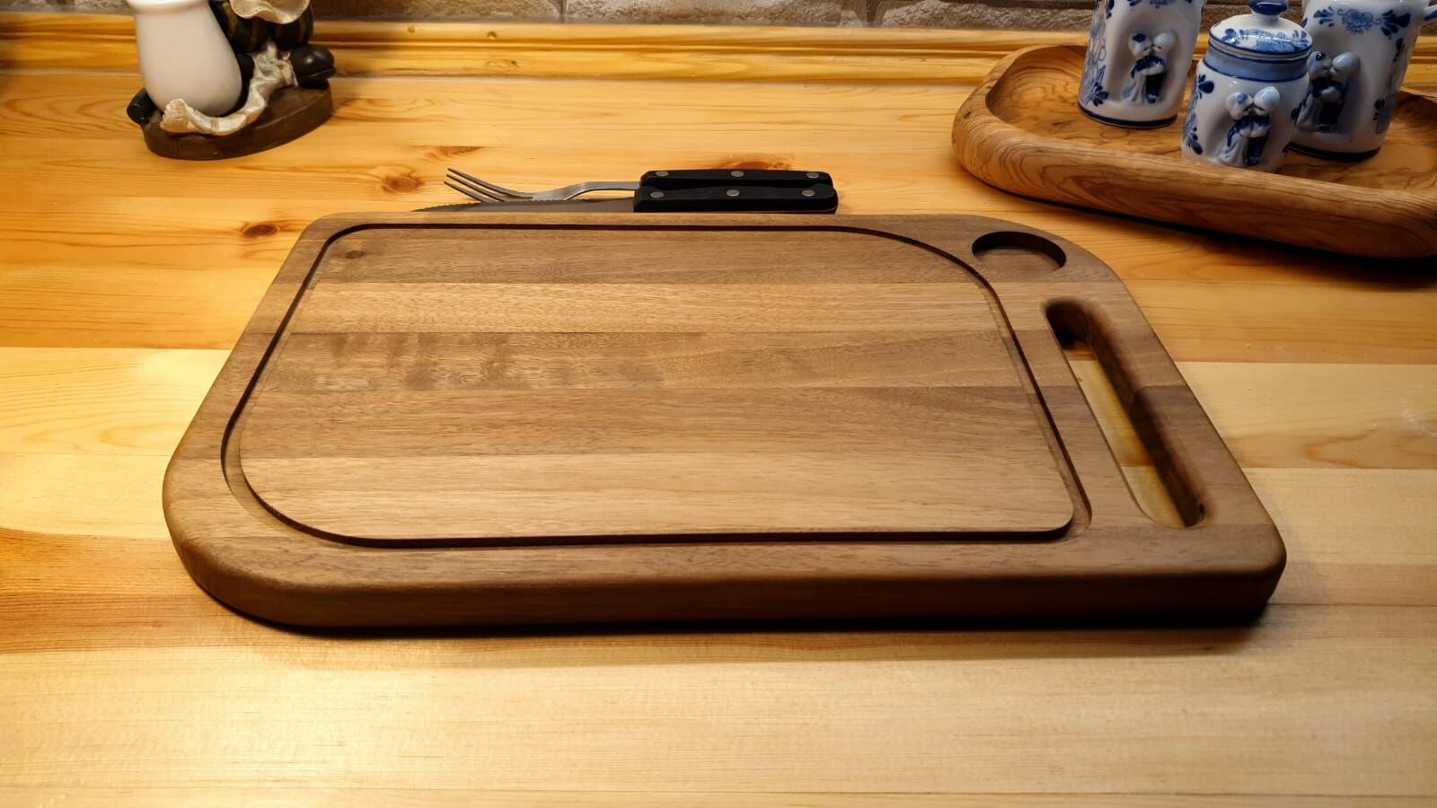 Masif Iroko Ağacı - Doğal Ahşap - Lüks - Baharat Hazneli - Steak -kesme -sunum - Et- Ekmek- Doğrama Tahtası