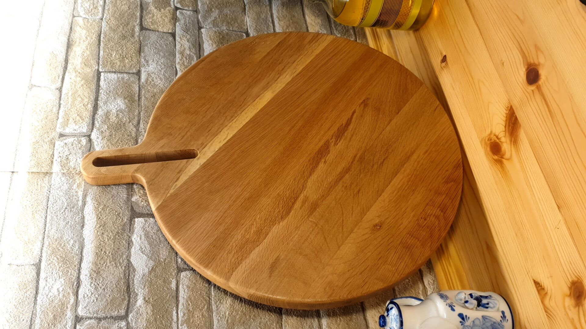 Meşe Ağacı Doğal Ahşap Pizza Peynir Sunum Et Steak Saplı Kesme Tahtası Yuvarlak 30 Cm