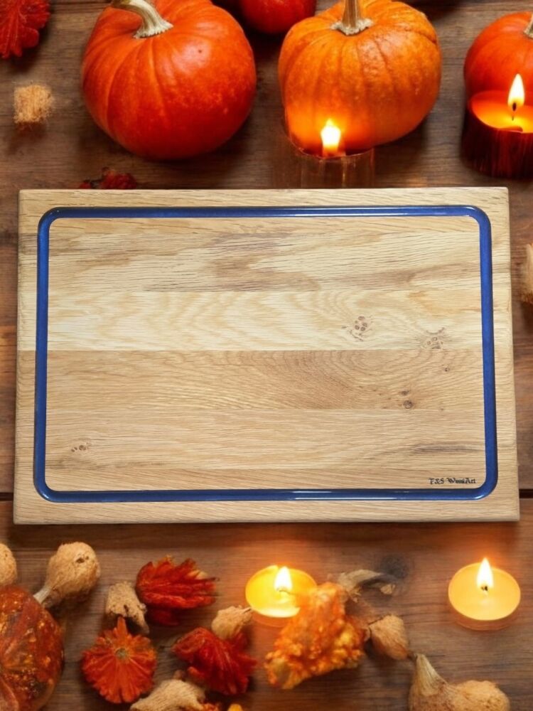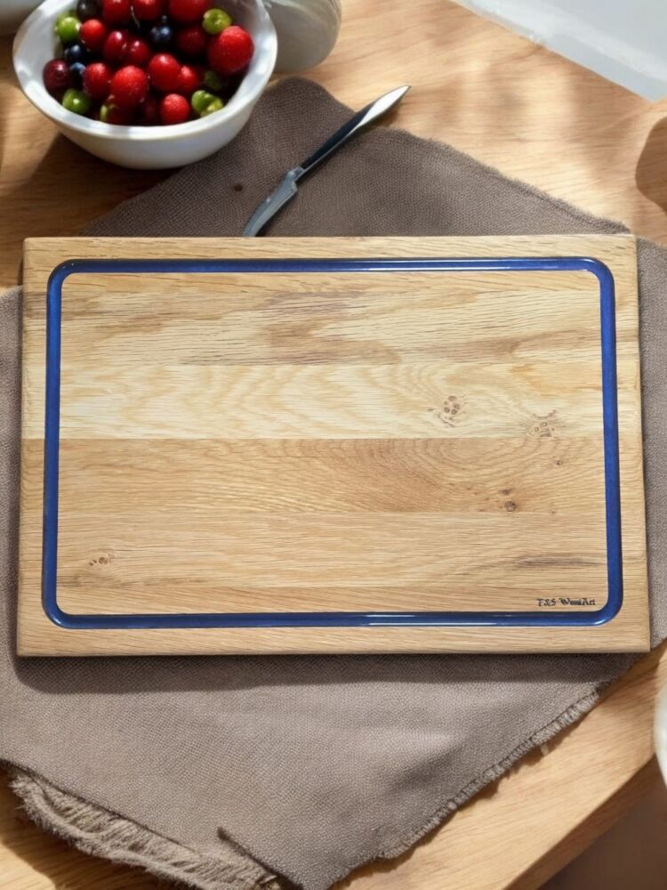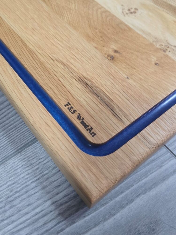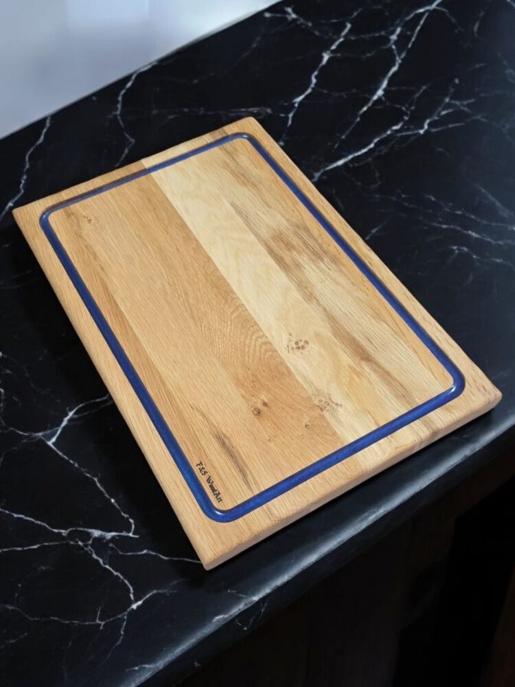 Meşe Ağacı - Mavi Epoksi Oluklu Kesme Tahtası 39 Cm