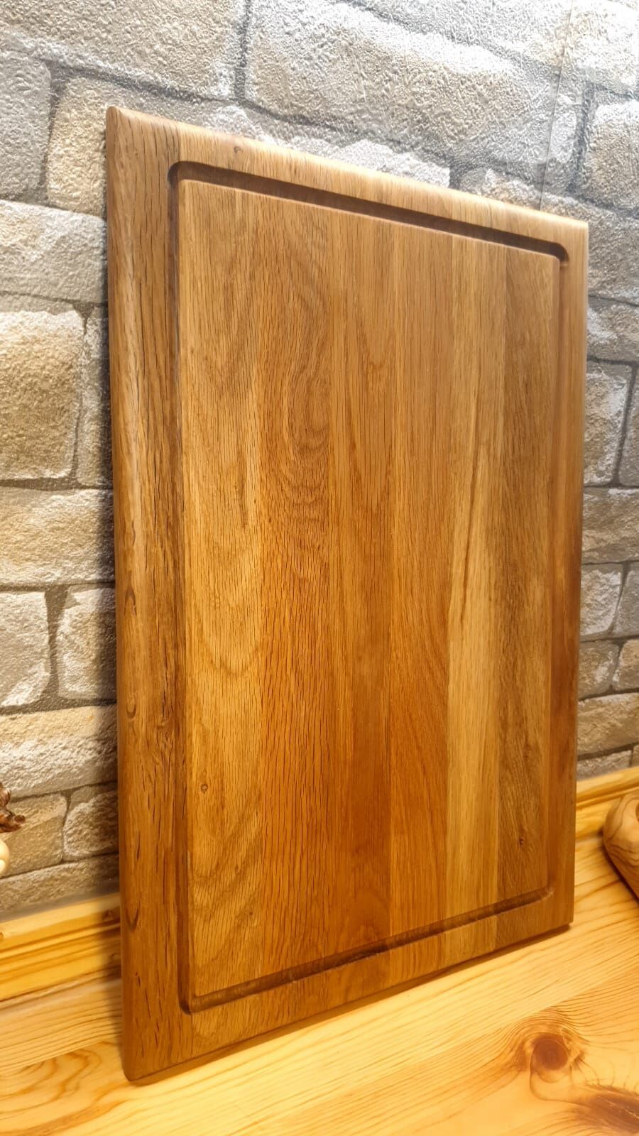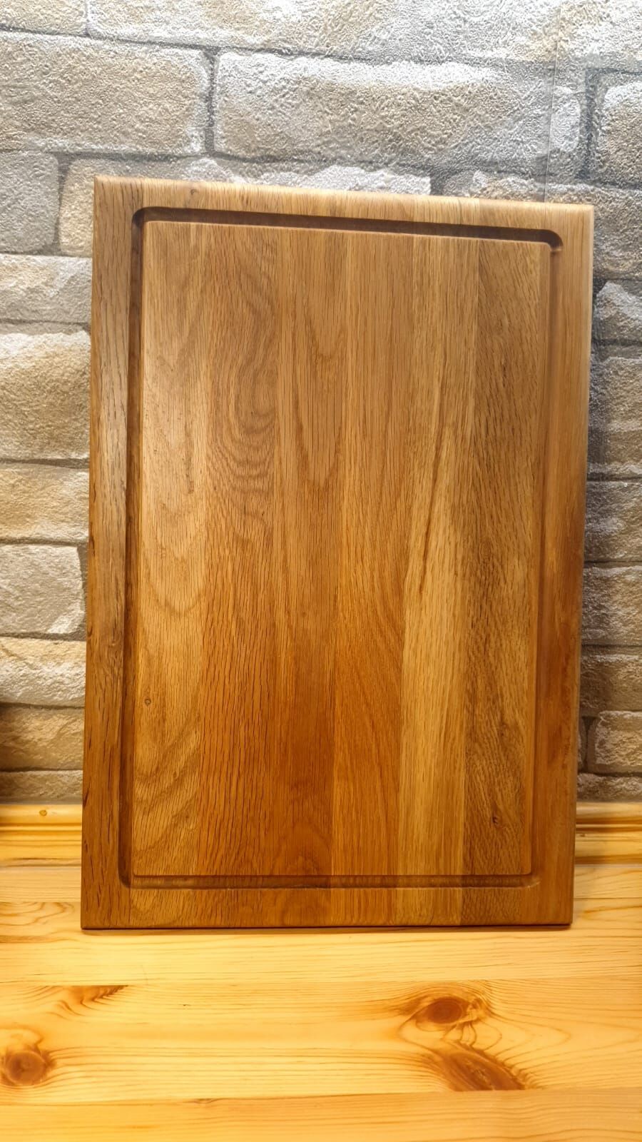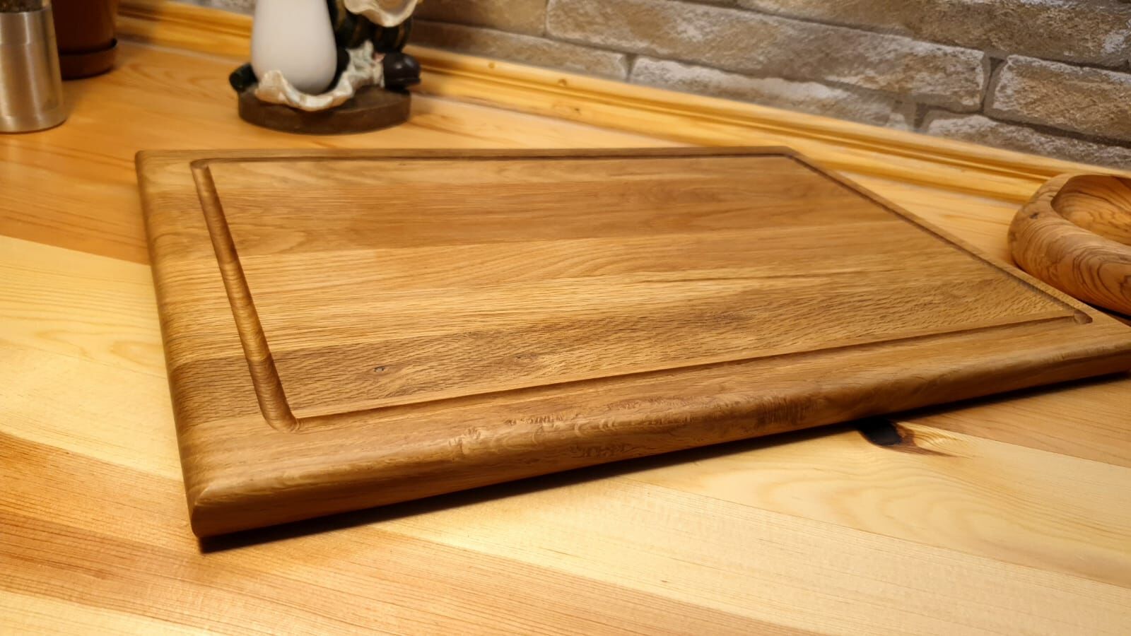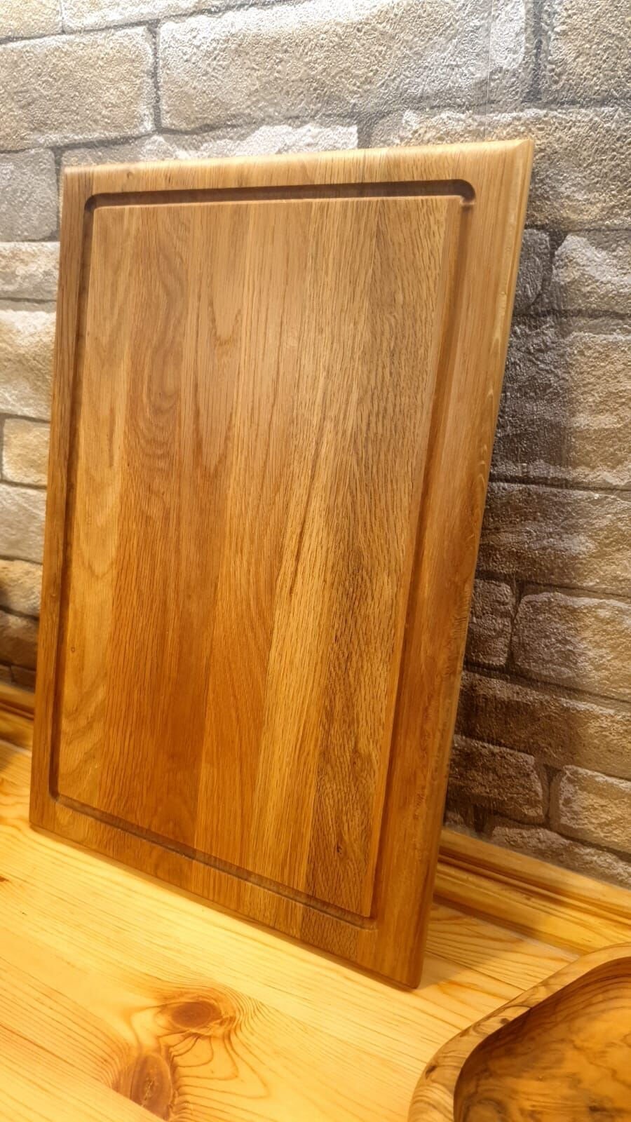 Meşe Doğal Ahşap El Yapımı Oluklu Kesme Sunum Steak Et Ekmek Sebze Doğrama Tahtası 39 Cm