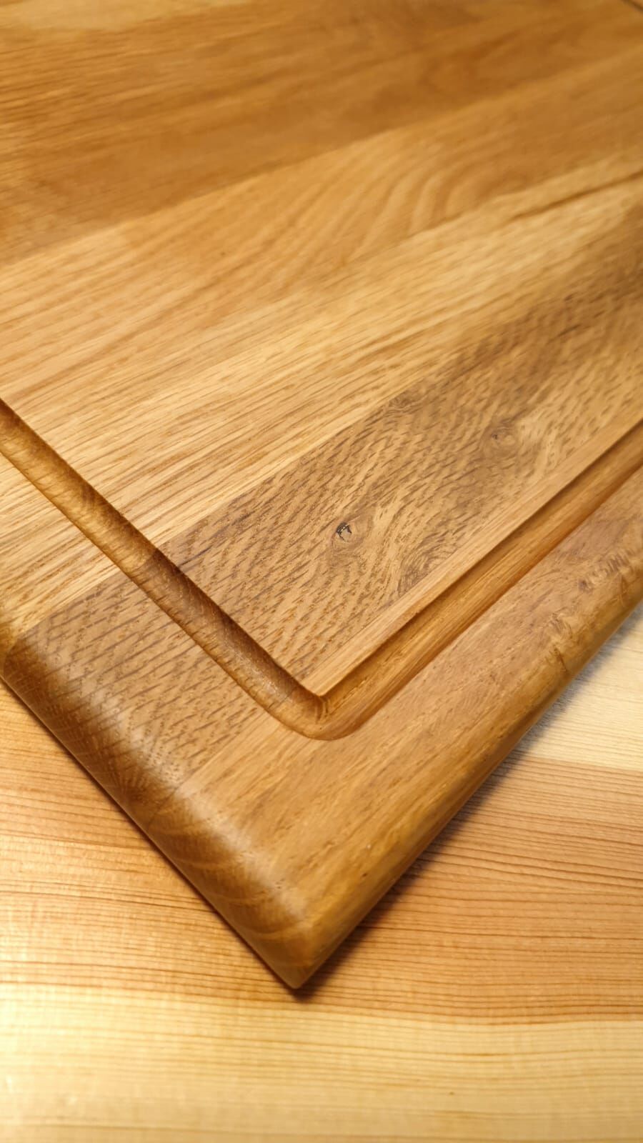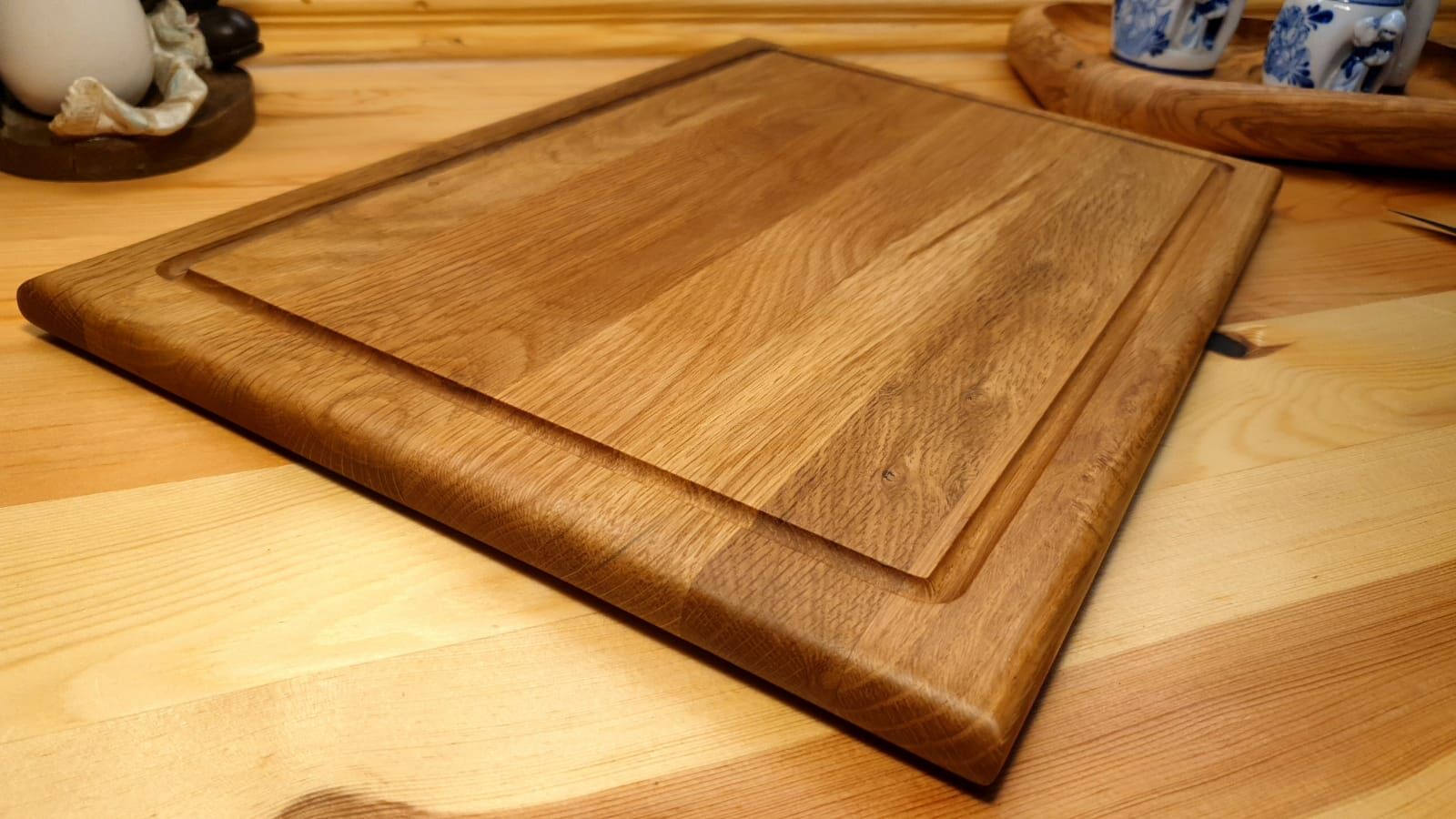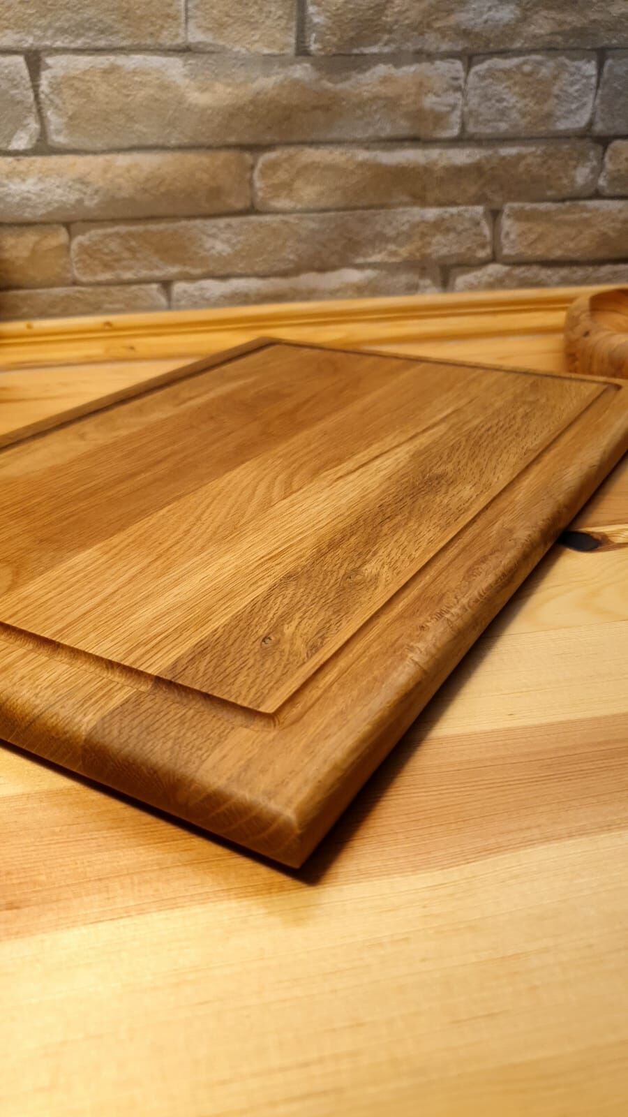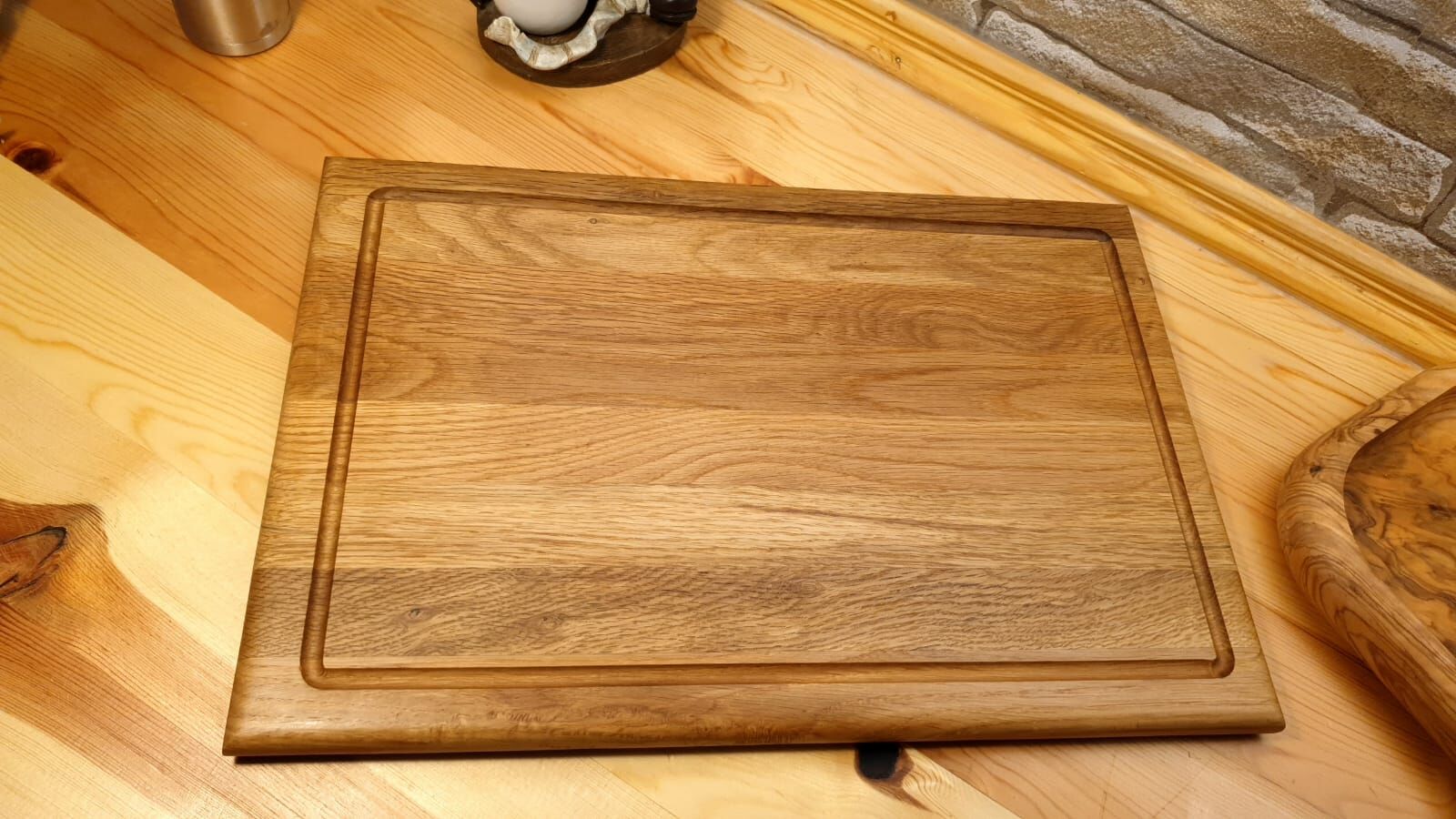 Meşe Doğal Ahşap El Yapımı Oluklu Kesme Sunum Steak Et Ekmek Sebze Doğrama Tahtası 39 Cm