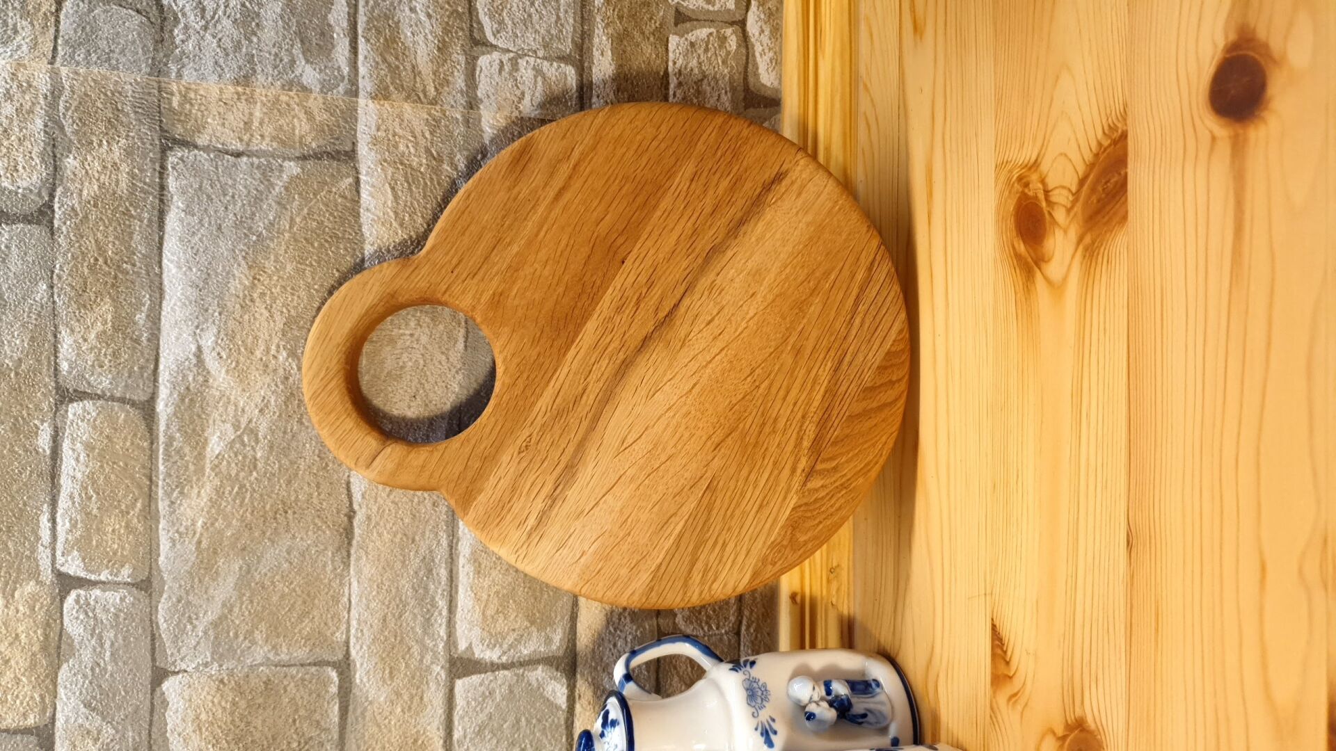 Meşe Doğal Ahşap Kesme Sunum Tahtası - Küçük Boy Yuvarlak