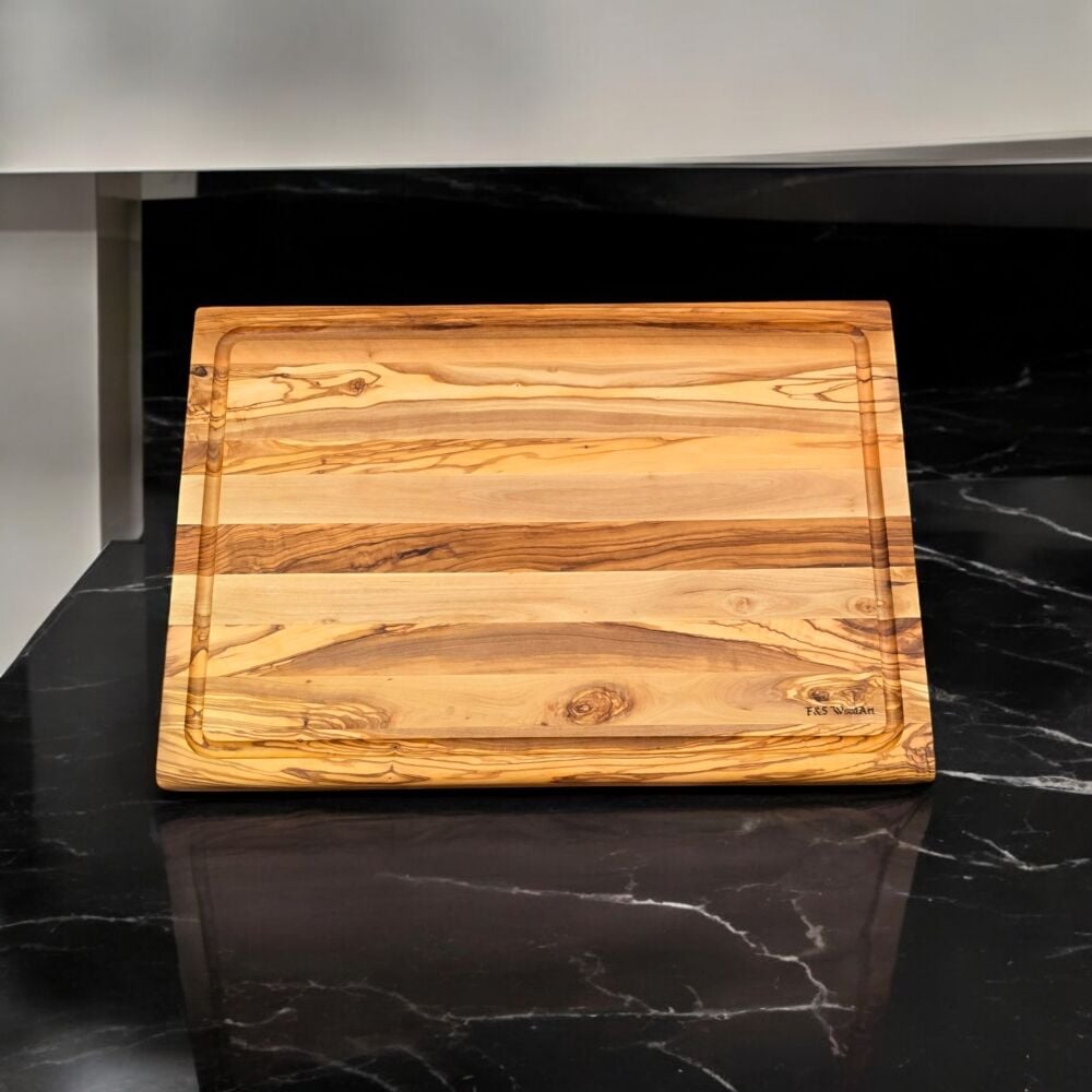 Zeytin Ağacı 40 X 27,5 Cm Oluklu Özel Kenar, Şef Tahtası - Kesme Tahtası - Sunumluk