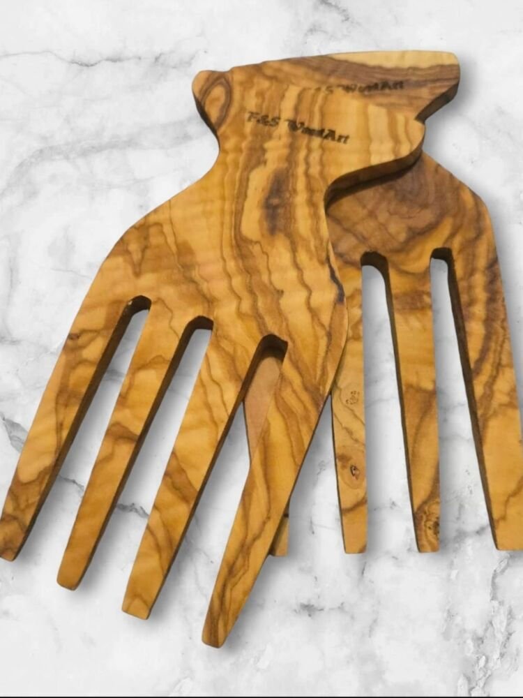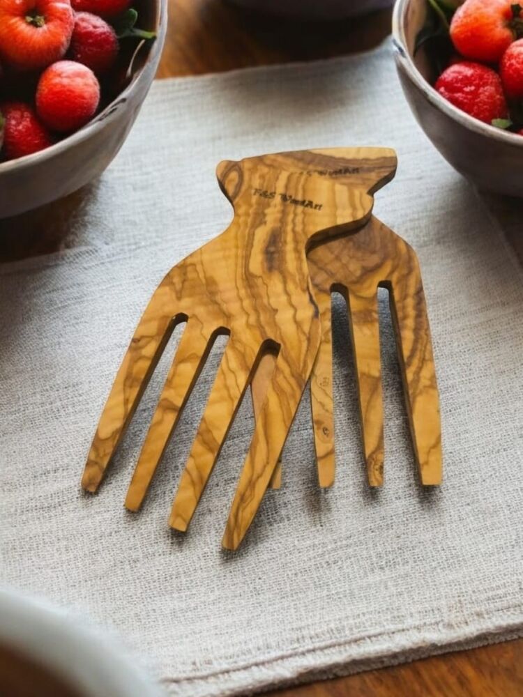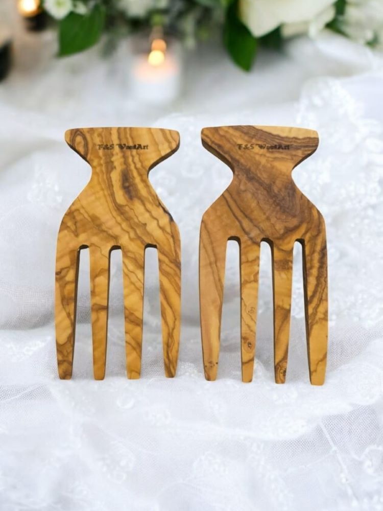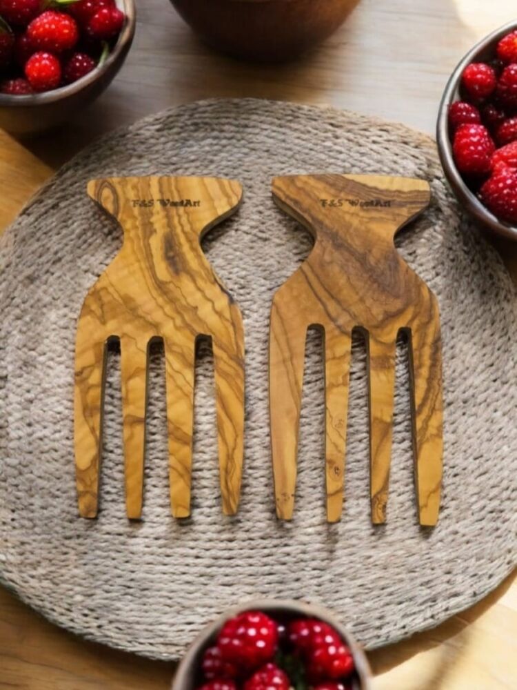 Salata Eli - Servis Çatalı 15x9 Cm Edremit Zeytin Ağacı El Yapımı 2 Li Set Salata Eli - Servis Çatalı 15x9 Cm