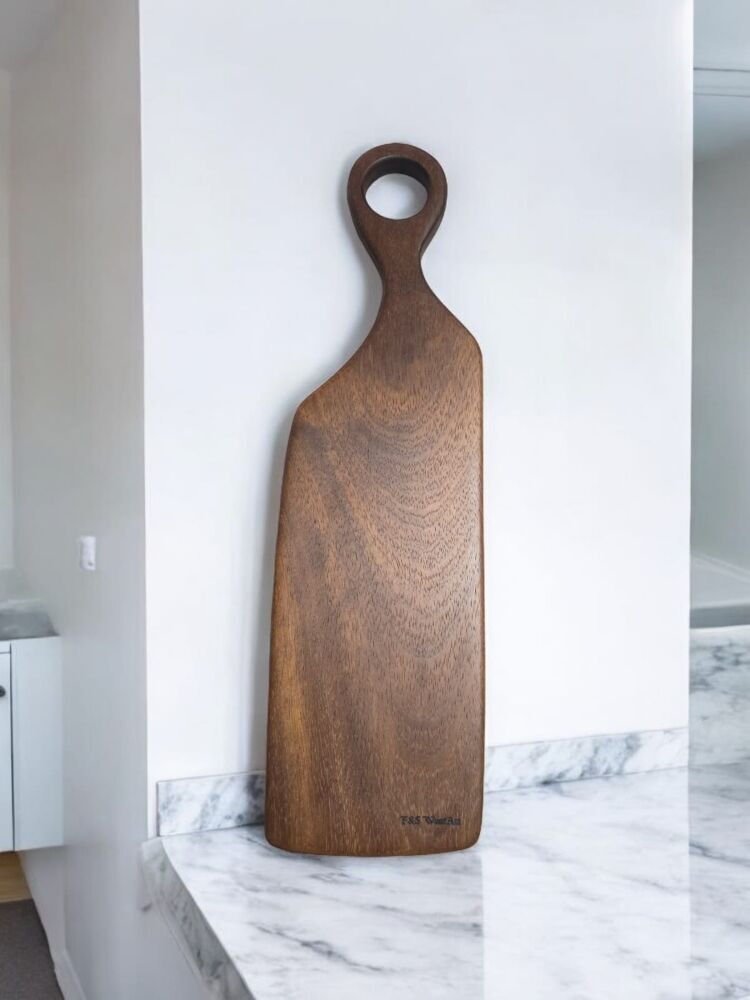 Saplı Koyu Ceviz Kesme Tahtası Peynir şarap Sunum Mdl 18 Tek Parça 48 Cm Masif Ahşap Eksiz Saplı Koyu Ceviz Kesme Tahtası Peynir şarap Sunum Mdl 18