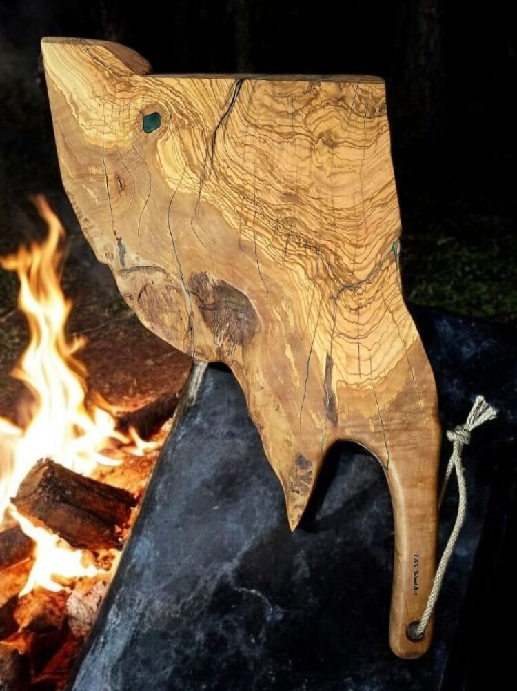 Xxl Büyük Boy Özel Seri - Zeytin Ağacı Barbekü Şef Tahtası 60 X 35 X 3,5 Cm