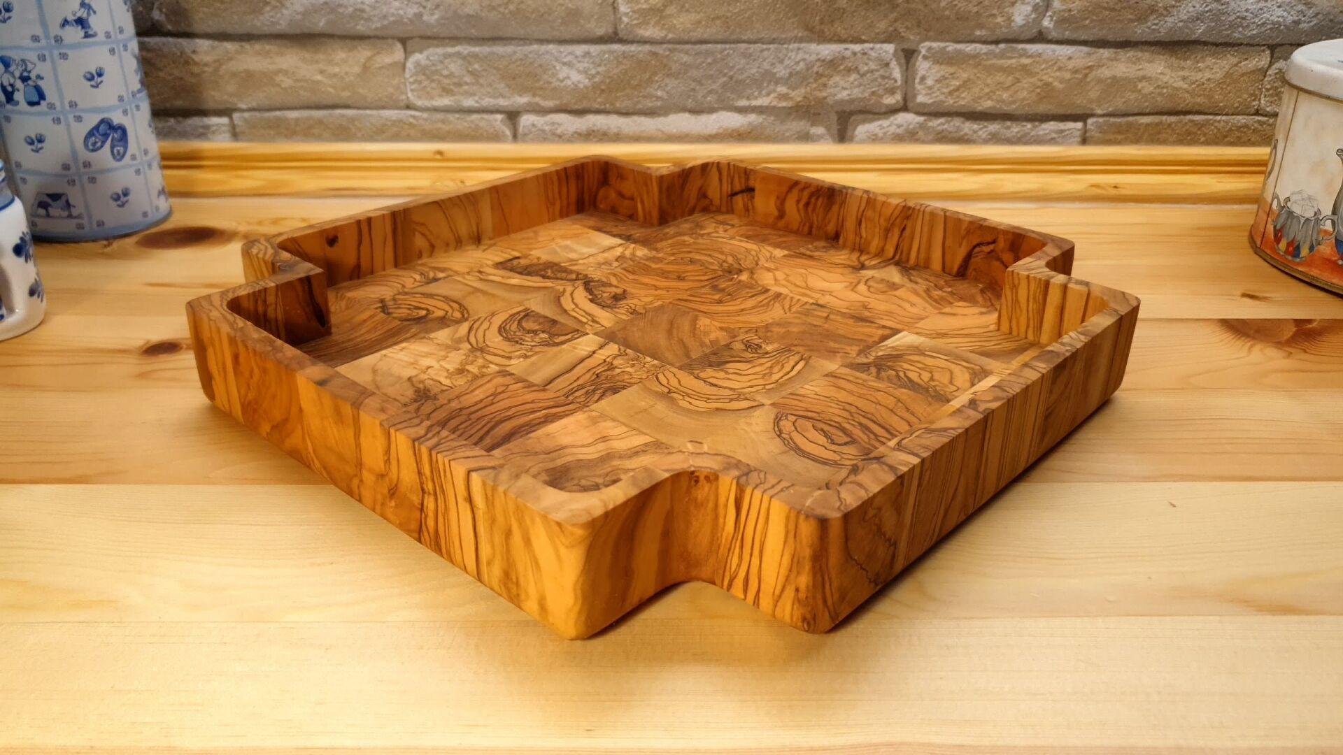 Zeytin Ağacı El Yapımı Köşeli Dekoratif Kase Sunum Tabak Tepsi 30 Cm
